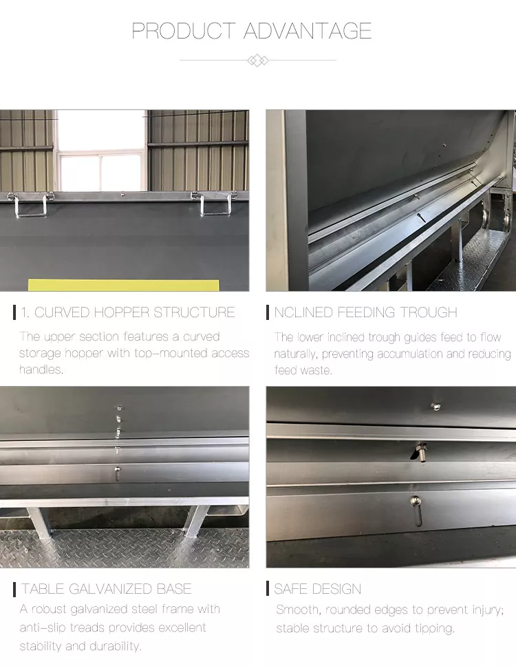 2. Palung Pengumpan yang Miring: Palung yang cenderung lebih rendah memandu pakan mengalir secara alami, mencegah penumpukan dan mengurangi limbah pakan.