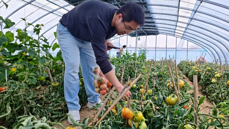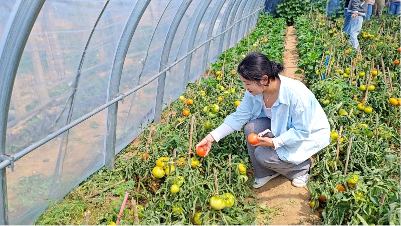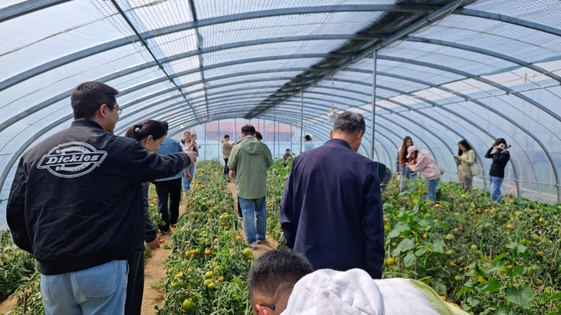 Setelah gairah, itu adalah saat yang nyaman. Pada pukul 10:30, kami pergi ke Kebun Pemetikan Tomat Xiazhuang bersama-sama untuk memulai perjumpaan intim dengan alam. Kebetulan hari itu cerah, dan matahari menyinari ladang. Ranting dan daunnya yang hijau ditumbuhi 69 Tomat berwarna merah cerah yang berbentuk bulat dan montok, warnanya cerah membuat orang ngiler dari kejauhan.