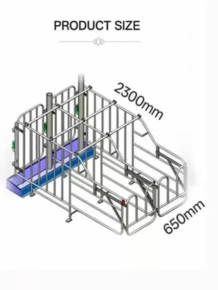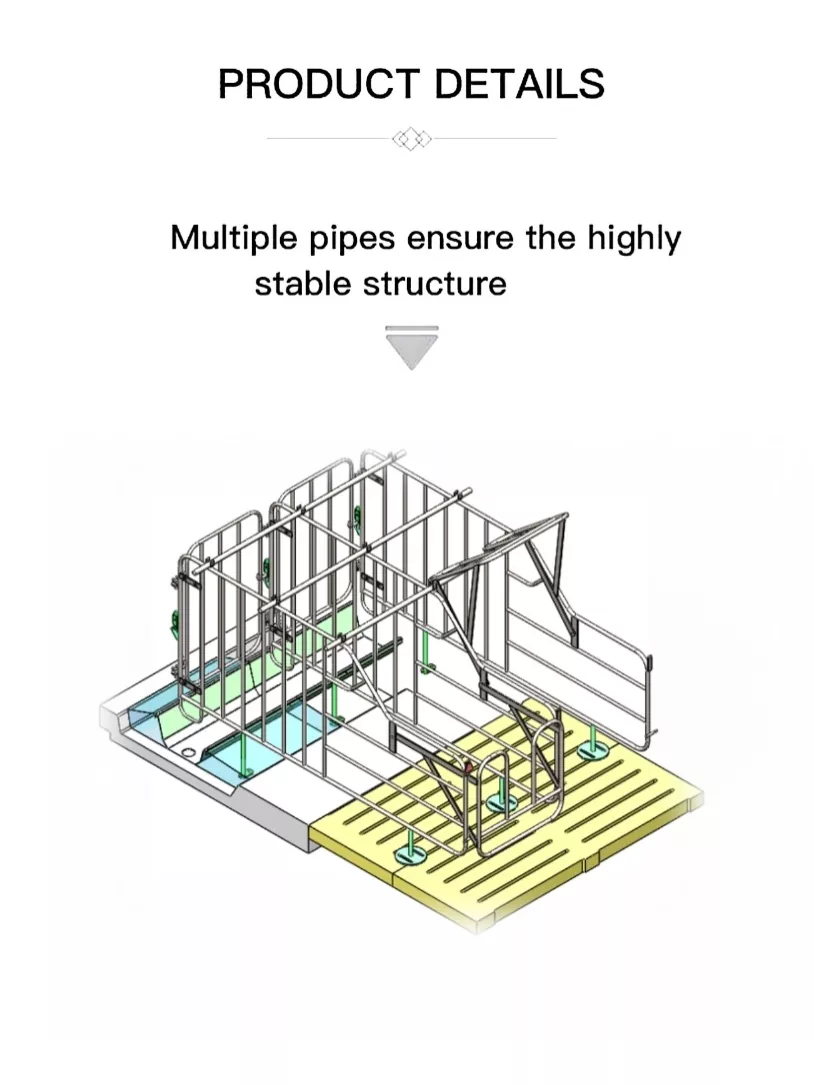 1. Pintu pengunci depan yang aman dengan kait yang andal mencegah babi keluar, dengan tepi logam membulat untuk menghindari cedera pada hewan.